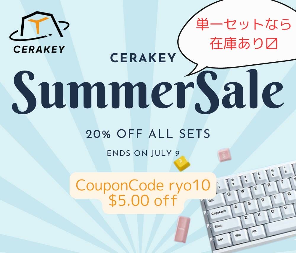Cerakey is currently holding a summer sale starting June 20, 2024 Japan time, but the main full set is running very low in stock.