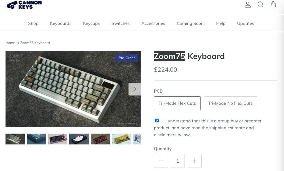 まだ間に合うかも。Zoom75がCannonkeysでGB継続中